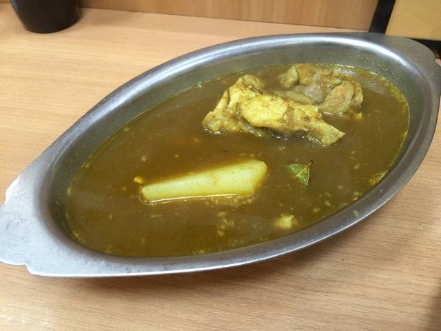 シャッバシャバのカレーに鶏肉とジャガイモが入っています。