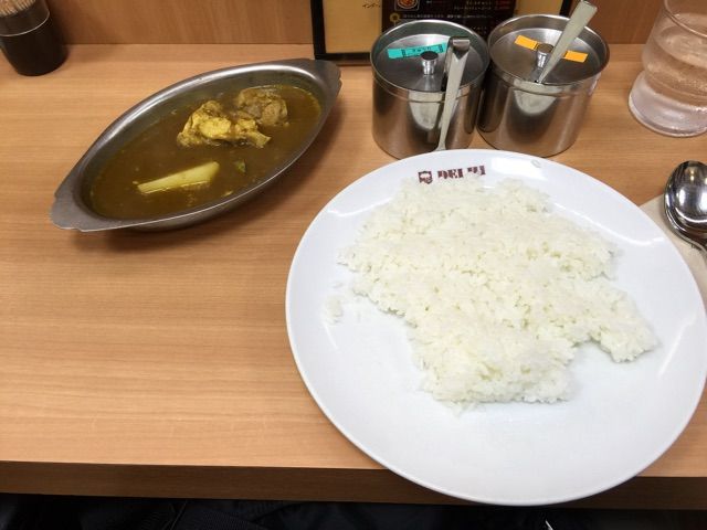 スパイシーなカレーソースがおいしくて、これが米に合う。