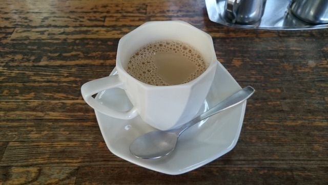 甘くないミルクコーヒー、必要なら砂糖使ってねと一言つけてくれるのがありがたい。