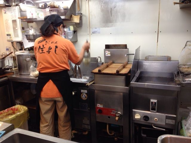 いこいの看板だが、どんぶりも制服も住よし。