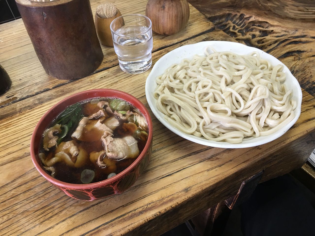 熱いつけ汁につけて食すと、ファーストインプレッションは薄味って感じですが、食べ進める毎に豚肉が美味しく感じ、小松菜がいい箸休めになり、ナルトに面白さを感じます