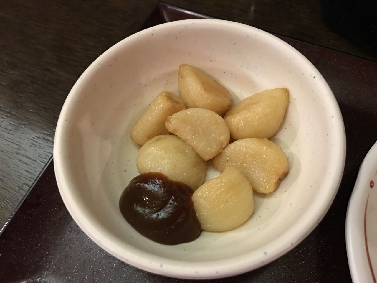 カウンターに持っていくとレンジでチンしてから、辛味噌を添えてくれます。