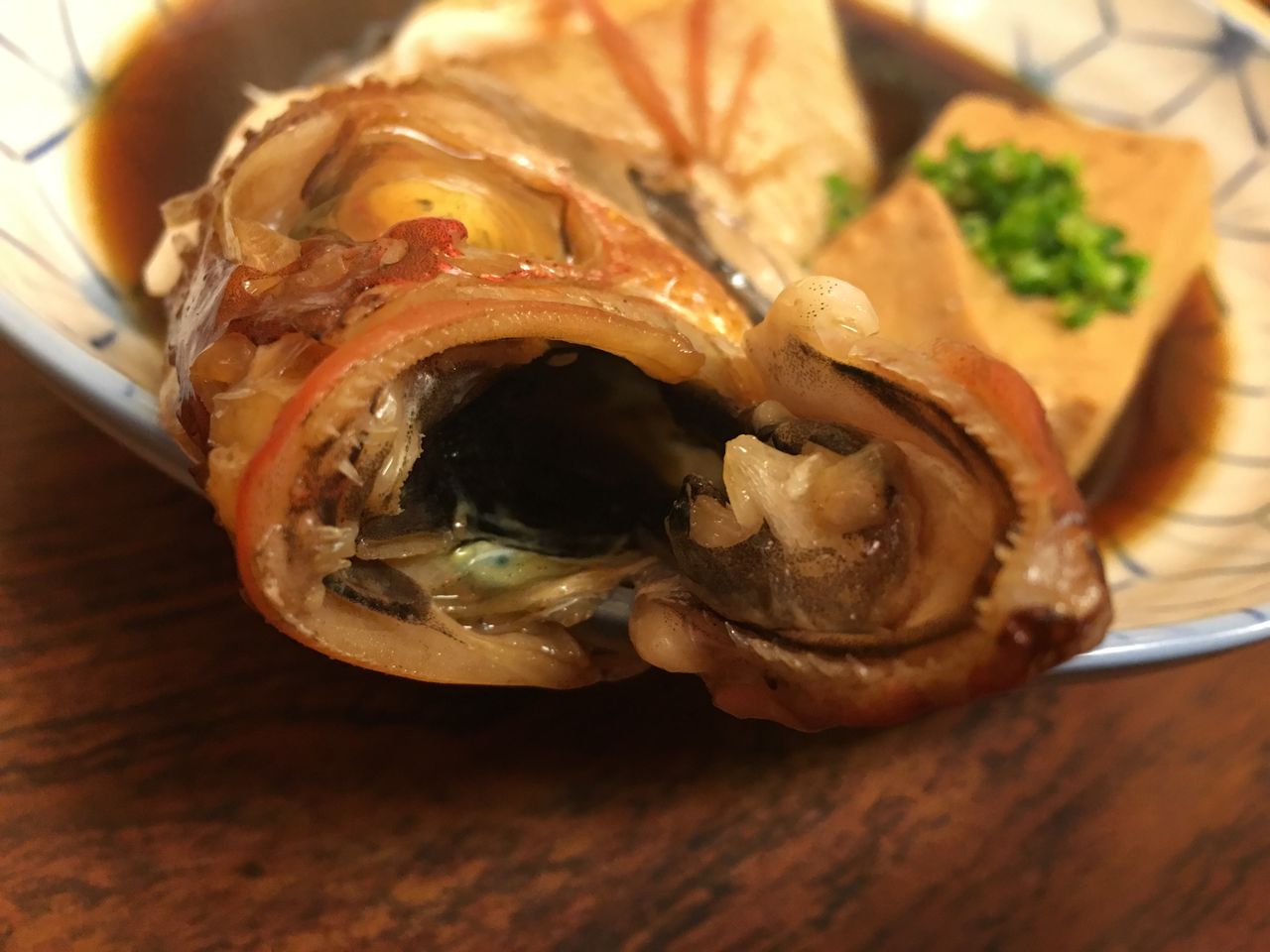 画像の通り骨髄はうっすら赤いのは、身にぎりぎり火が通っているんですよね。ステーキで言うレアとは違い、火の通った刺身って感じでしょうか?ノドグロの身質の良さを最大限に味わえる調理なんじゃないでしょうか?
