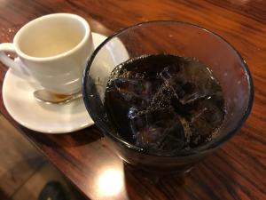 アイスコーヒーの原型って感じで、提供されたネルドリップコーヒーを氷の入ったグラスに注ぎいただきます。