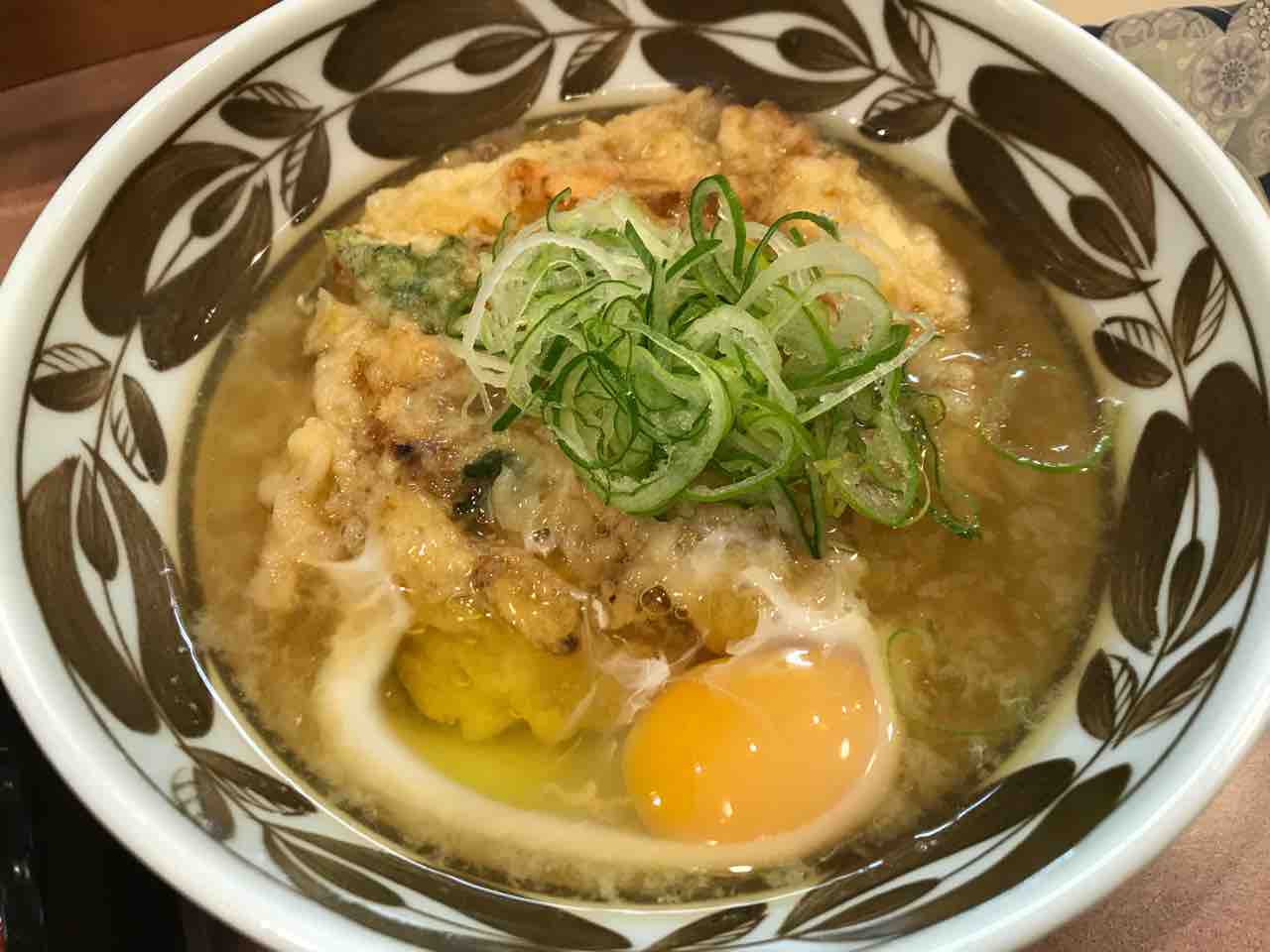 ハナは天ぷらをつまみ、ナカは卵を崩し天ぷらに黄身のコクを味わう、シメは混戦流動物のように流し込みます。
