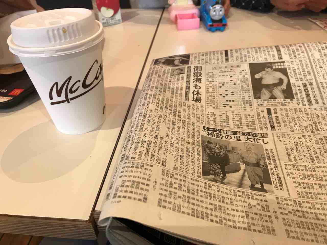 所用で江戸に向かっておりまして…、仕事なものでコーヒーとスポーツ新聞がお供です。紫煙を燻らせたいところですが、今の時代喫煙所があるだけでも有難いって感じですな。