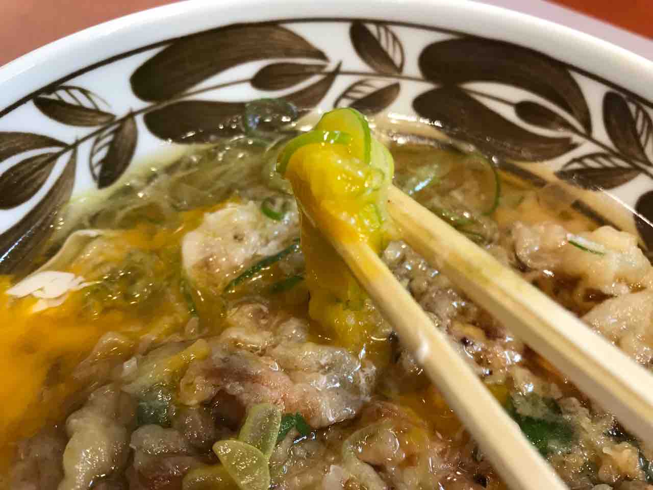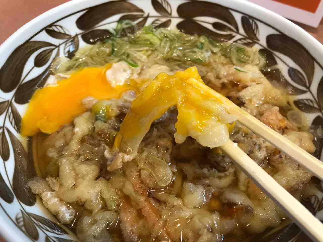 かなりの飲み物も食べ物も結構な限定メニューだったもので、お姉さんに何があるか聞いてみたら、かきあげはあるってことで、天つまにしてもらう。当然卵も落としてもらいますよ!
