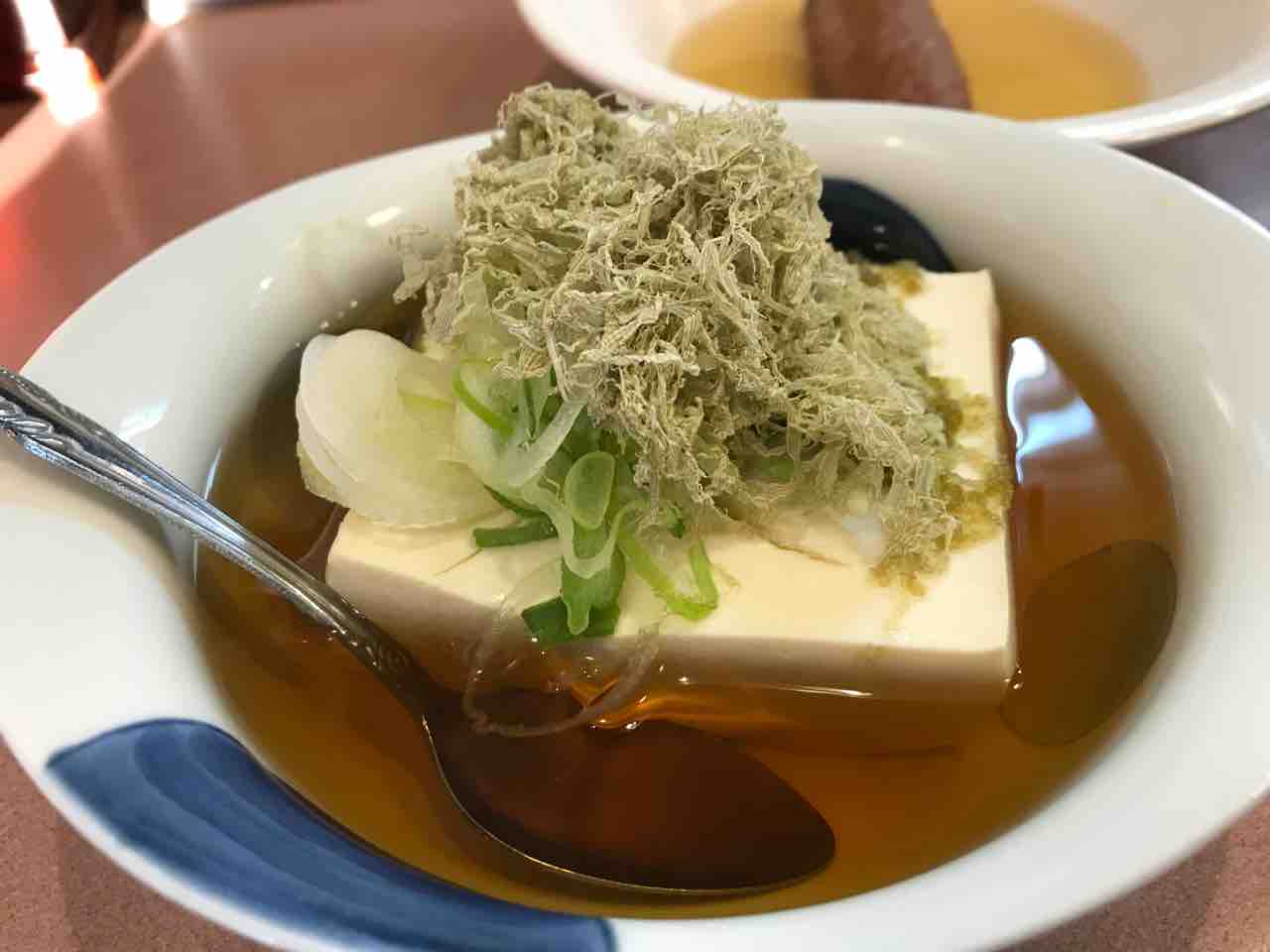 湯豆腐はとろろ昆布に刻み葱。