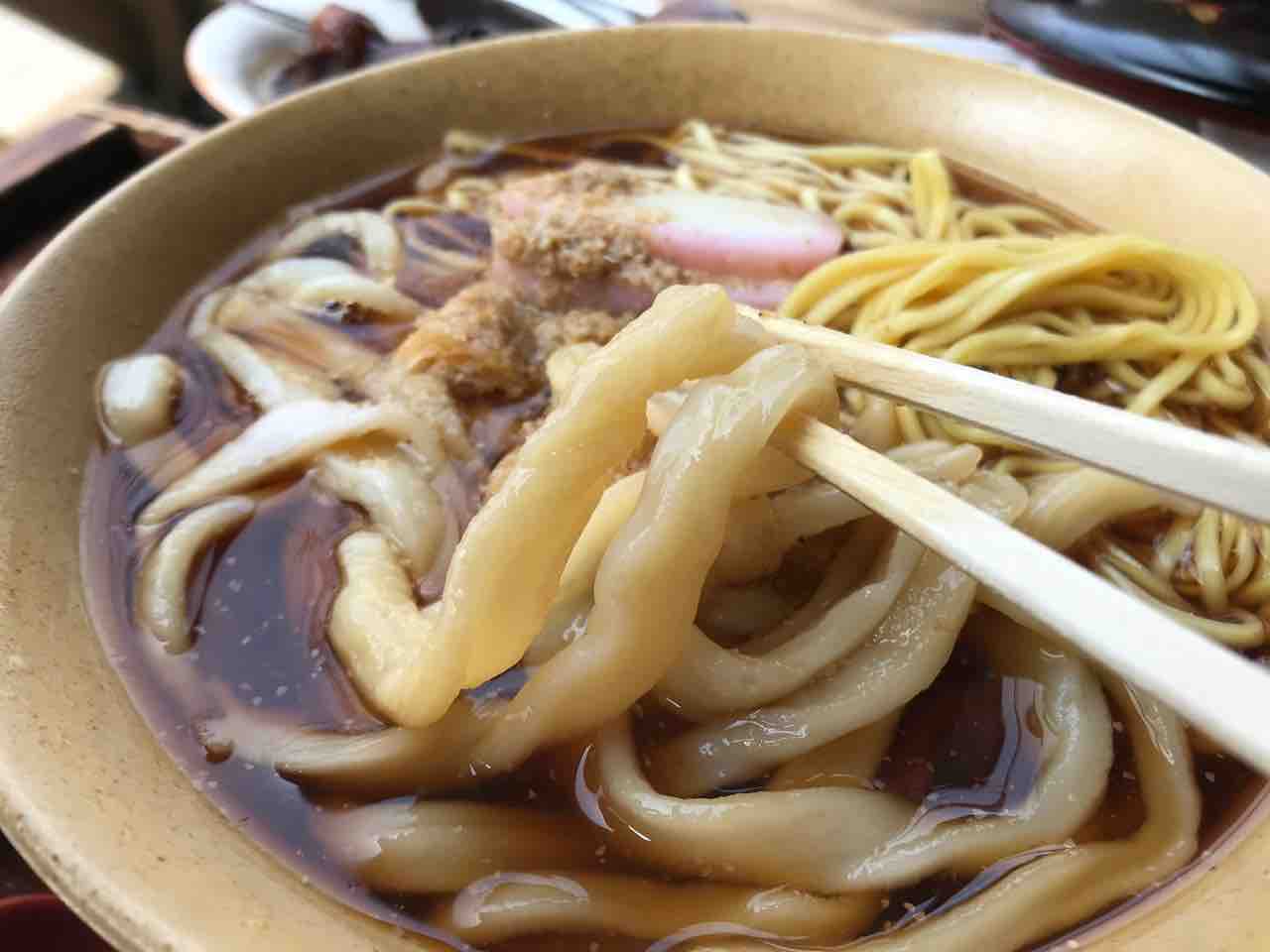 うどんに中華麺を同じどんぶりに入れるってのは他では見ませんね。