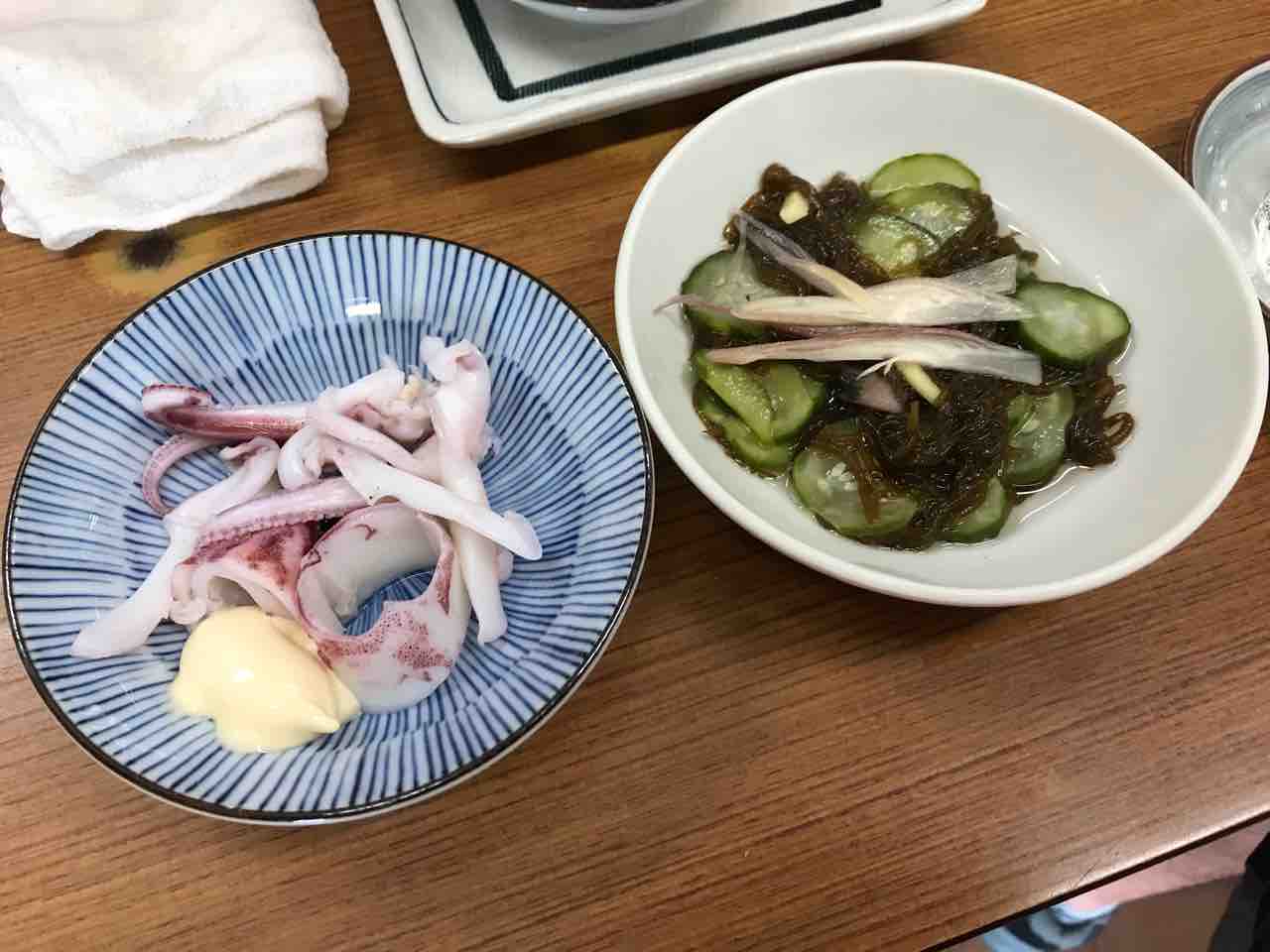 鰹刺、ダツイモ、蝦蛄、烏賊ゲソ@魚源食堂