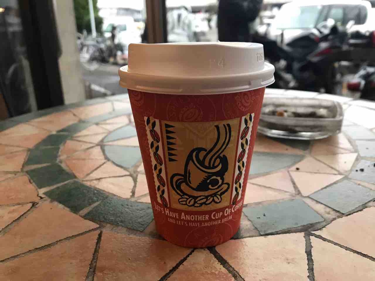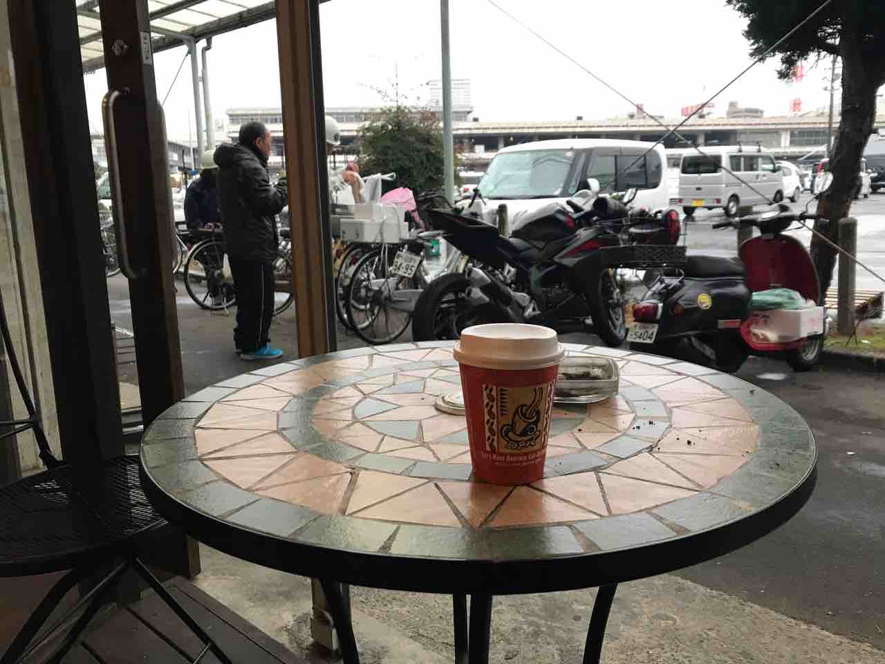 店内禁煙だが、灰皿はテラス席に。