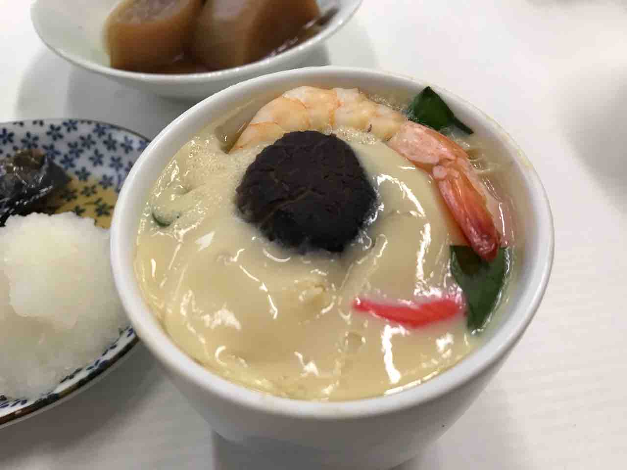 鮪、甘海老刺、茶碗蒸し、糸コン煮、カキフライ@魚源食堂