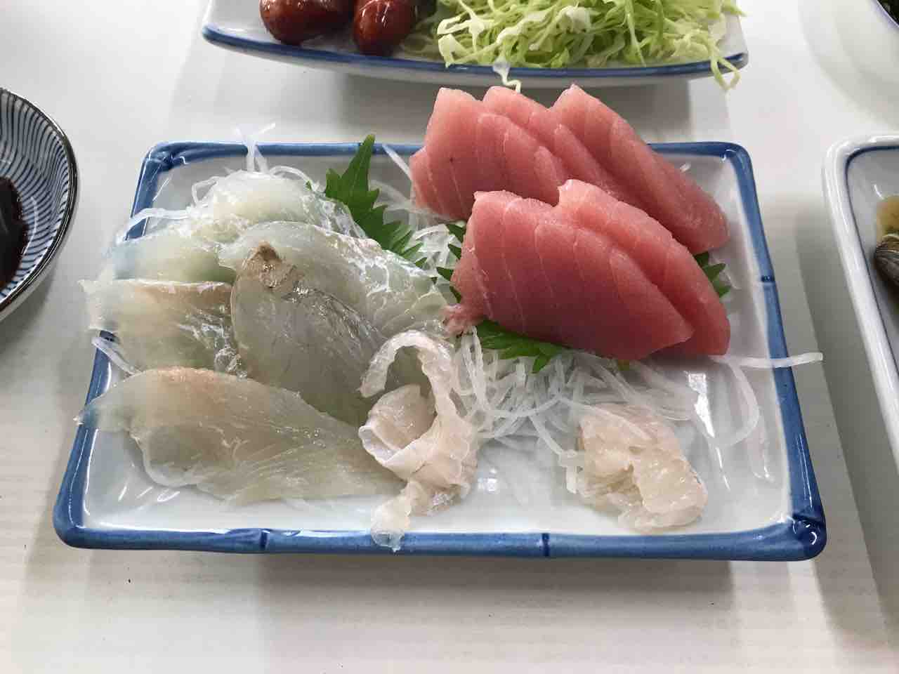 鰹刺、ダツイモ、蝦蛄、烏賊ゲソ@魚源食堂