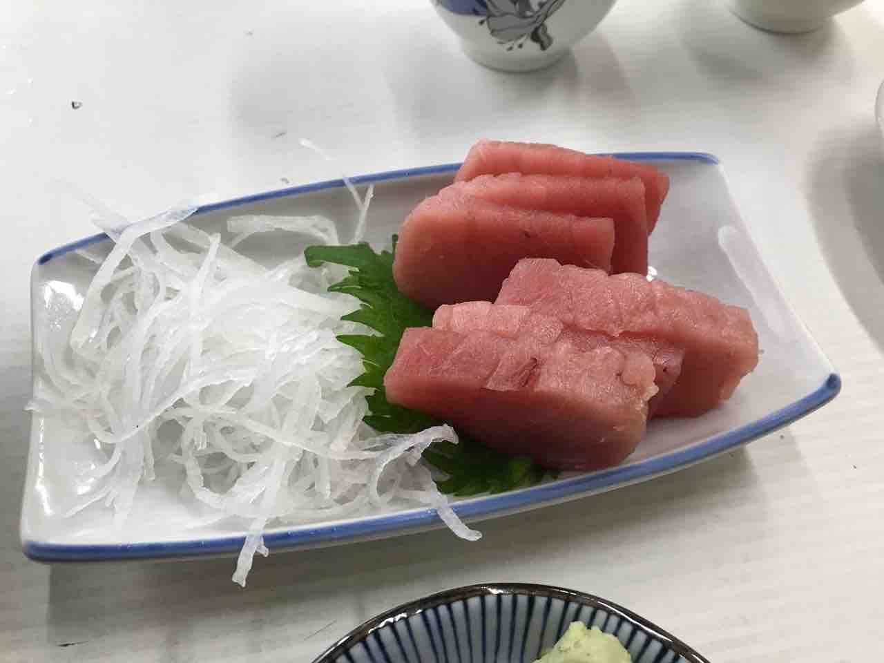 鮃&鮪刺、烏賊の塩辛、はんぺい@魚源食堂