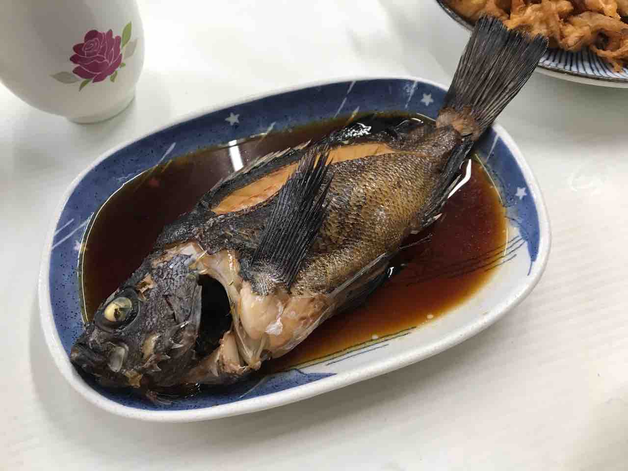 鮪刺、エボダイ煮付け、茶碗蒸し、厚揚げの煮もの@魚源食堂