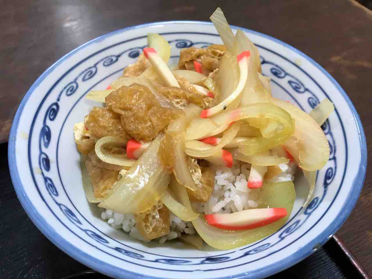 サッと煮こまれた油揚げに玉ねぎかまぼこ。玉ねぎは歯触りと甘みが楽しめますね。