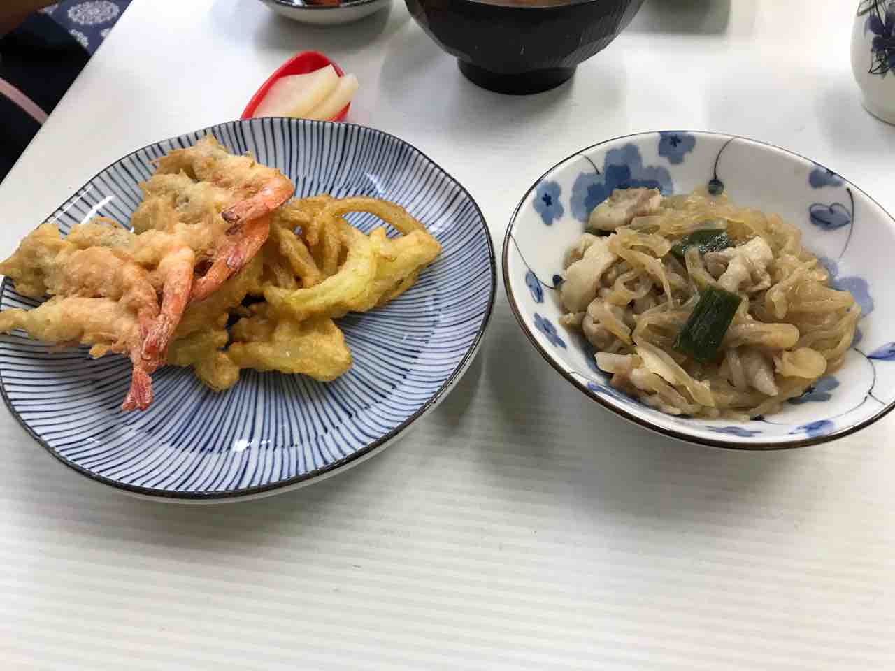 鮪刺、眼張煮付け、茶碗蒸し、アカシャエビ&玉葱天ぷら@魚源食堂
