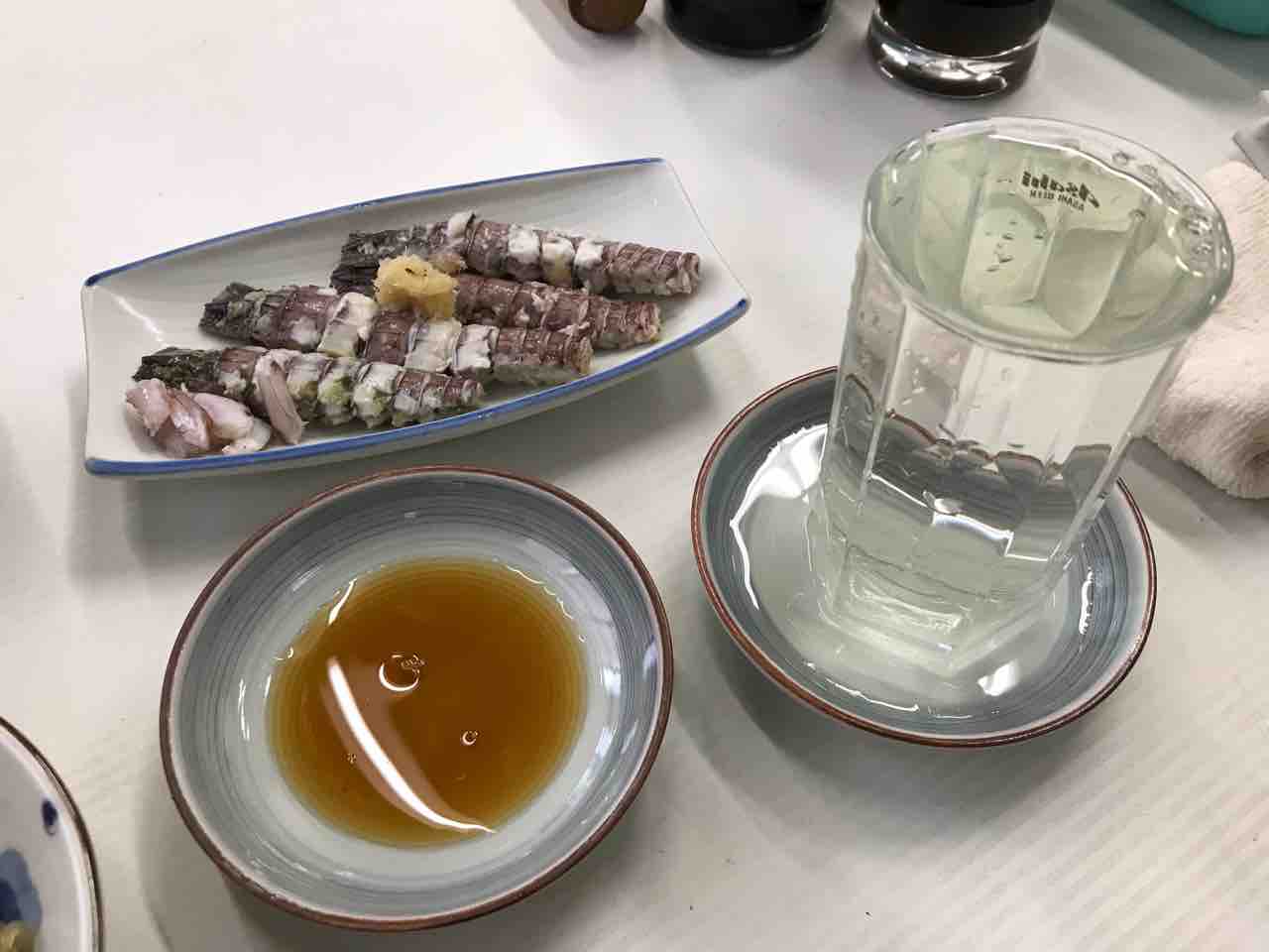 鰹刺、ダツイモ、蝦蛄、烏賊ゲソ@魚源食堂