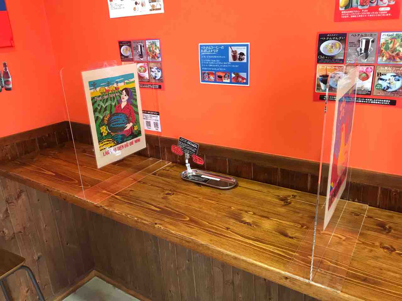 コロナ対策でアクリルボードが立っていますね。