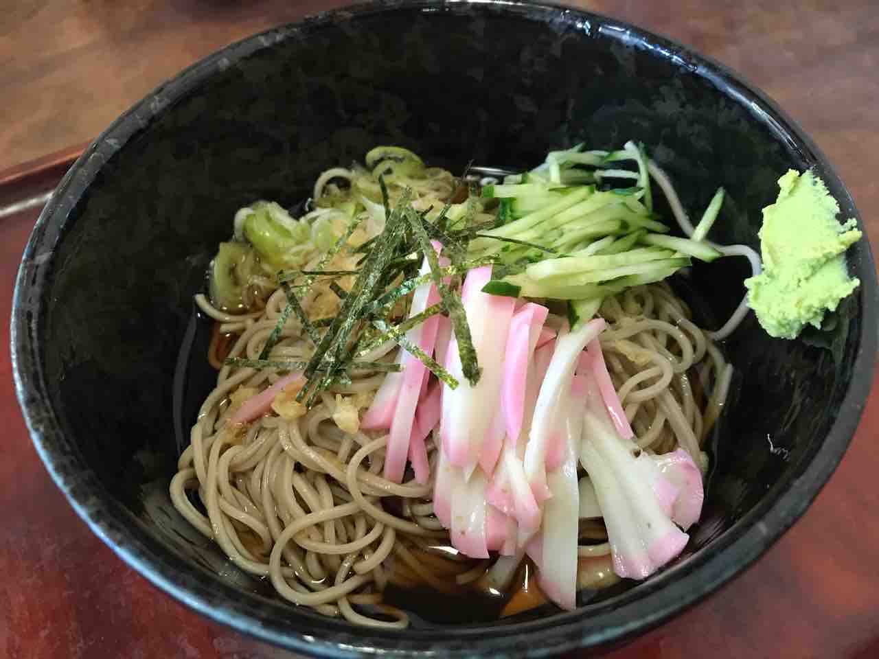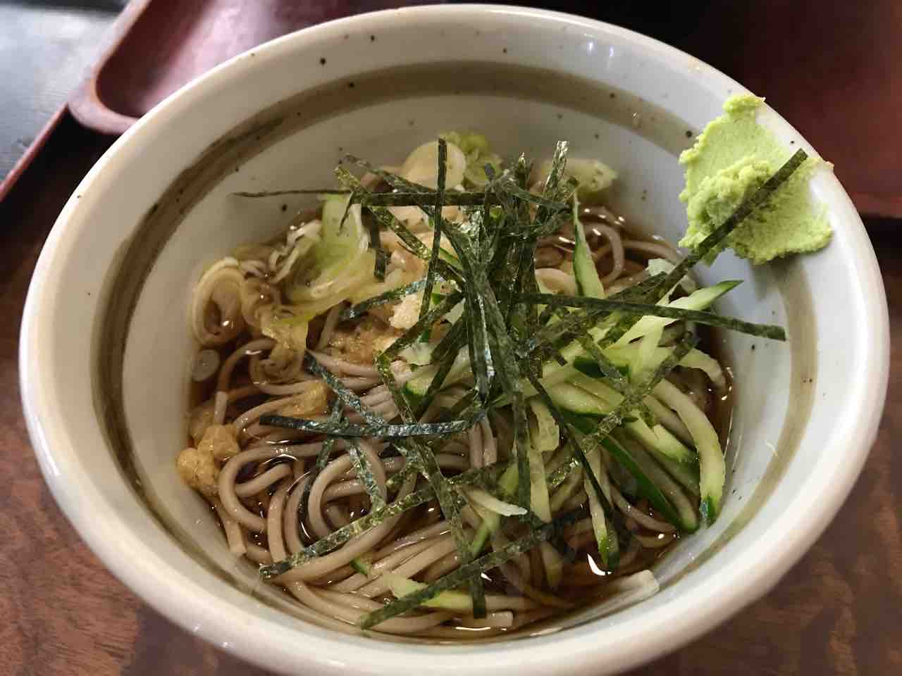ちなみにこの冷やしたぬきは関東の冷やしたぬきであって、冷たいぶっかけ蕎麦に天カスや胡瓜、かまぼこよりナルトを細切りにした物を載せたものであり、シーズニングは山葵と決まっております。