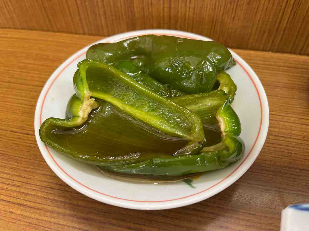 偏食少食の真ん中は「絶対ピーマンなんか食べられない!」なんて話をするもんだから、嫌がらせで「ここのピーマンは旨いぞ!」っと誂える。