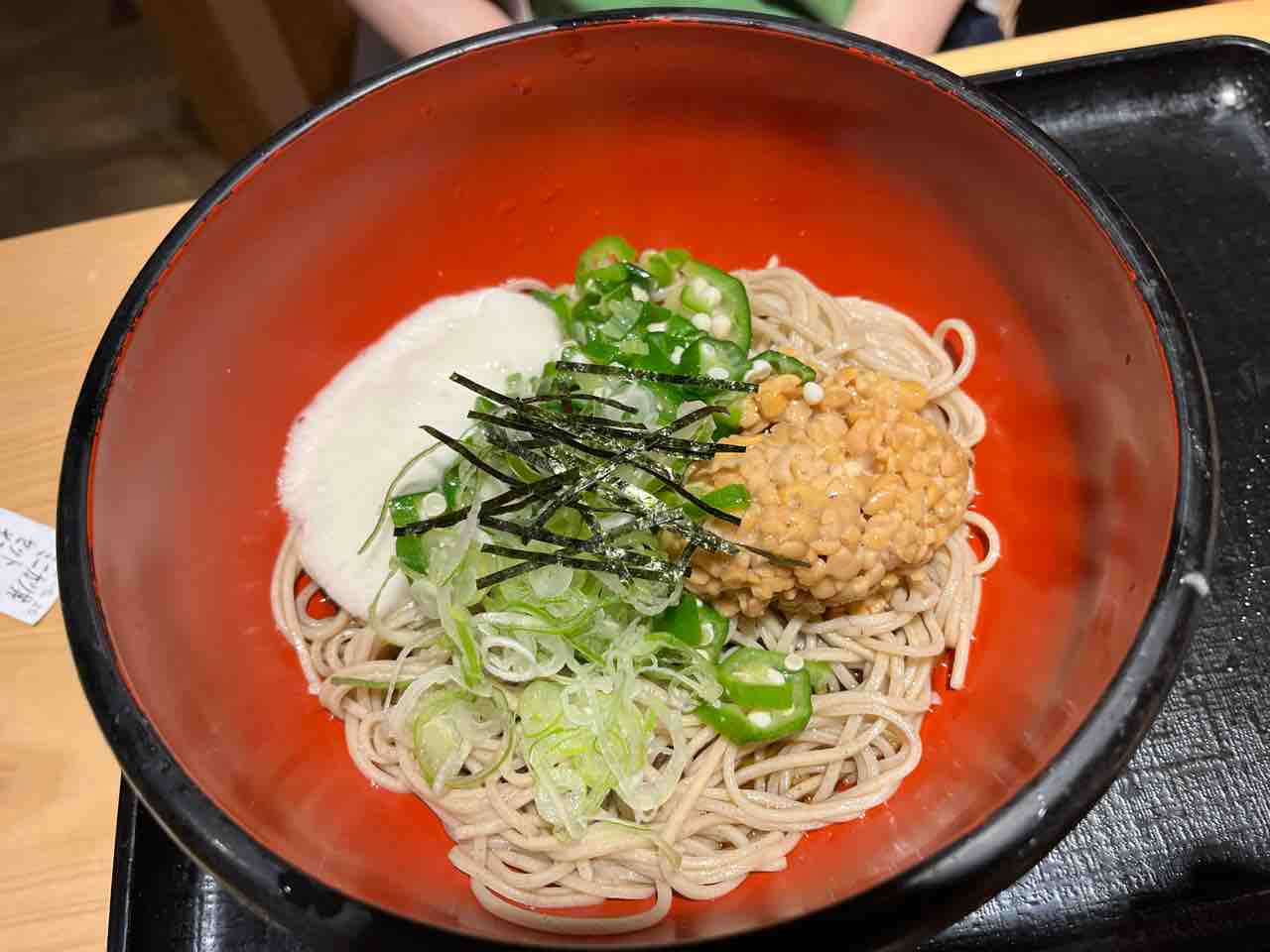 奥様は5付き限定のネバトロ蕎麦。ラー油は抜いていただいております。