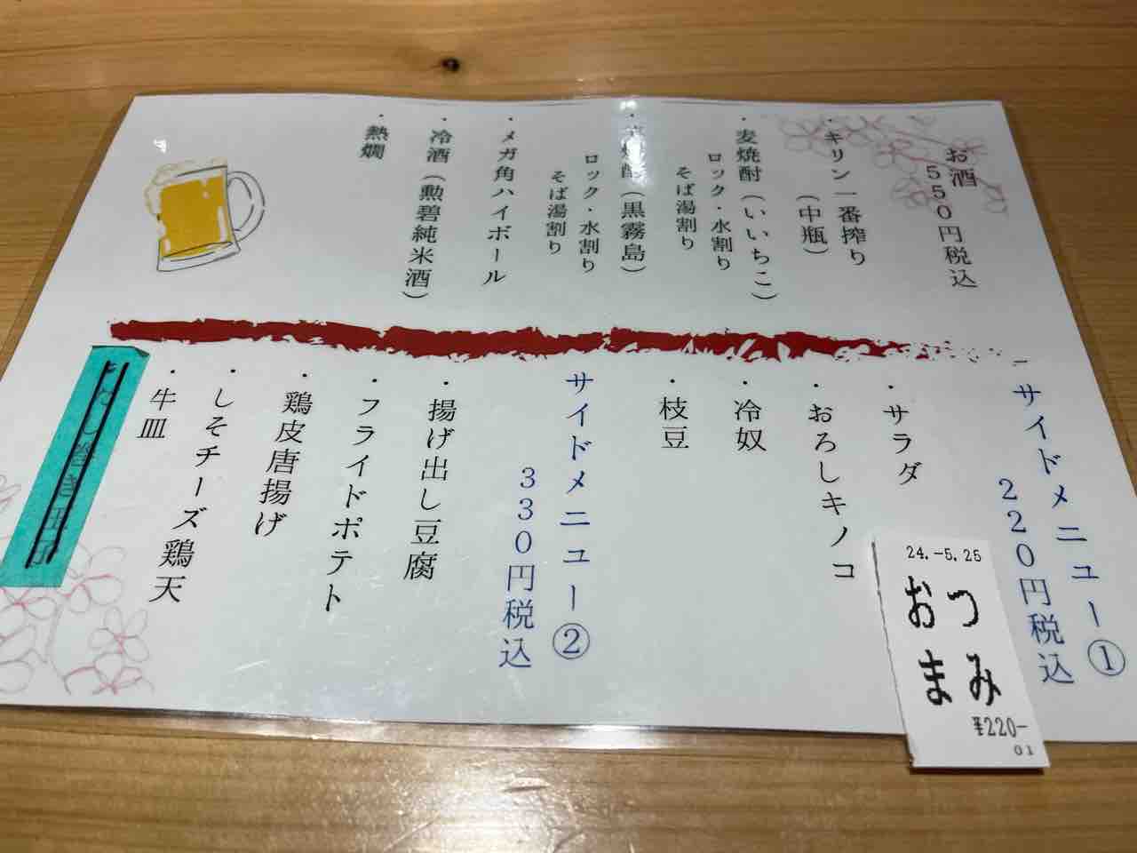 覚書「お酒とサイドメニューはテーブルにしかない。」