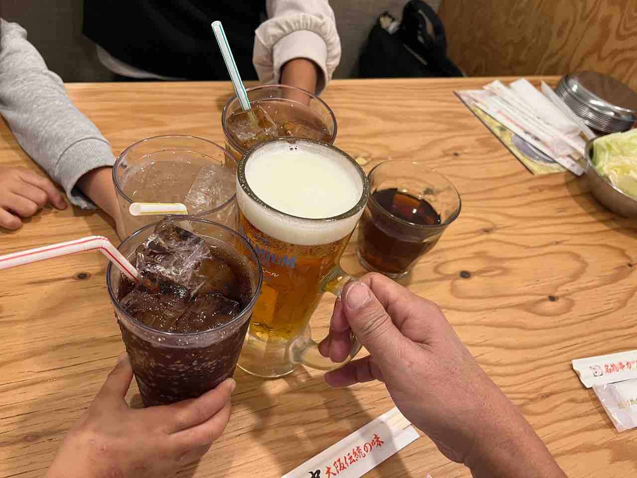 とりあえずこども本気じゃんけんで半額と無料になったドリンクで乾杯。