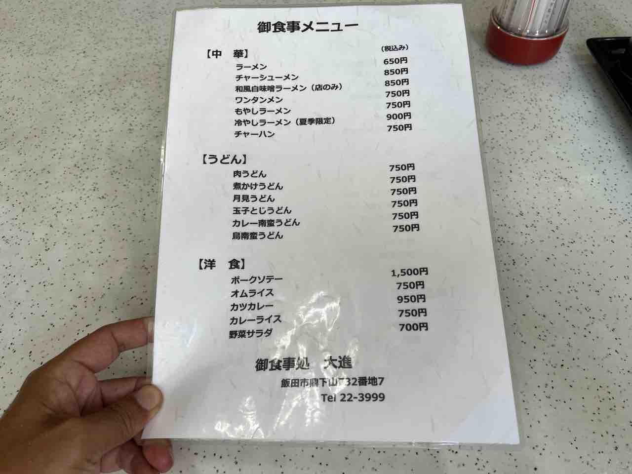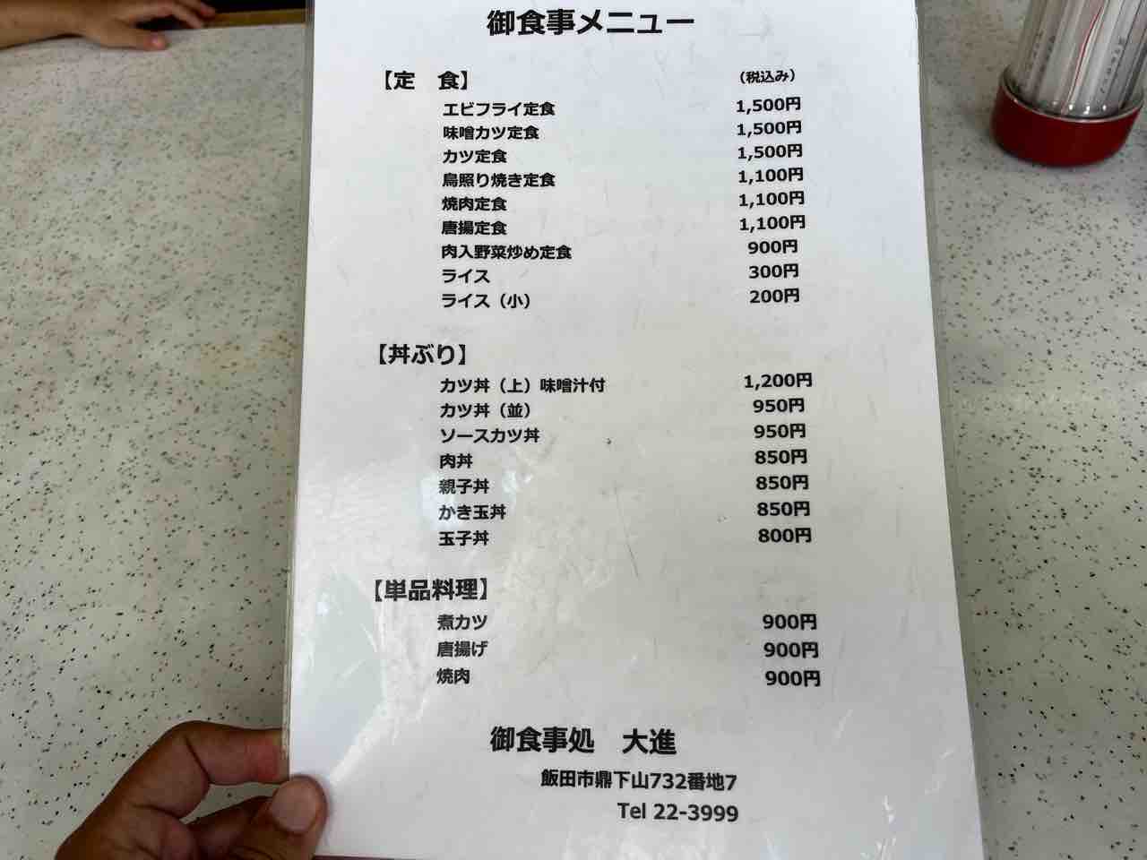 本日(202408)は長野県飯田市鼎下山にある和洋食の食堂大進さんにお邪魔しました。