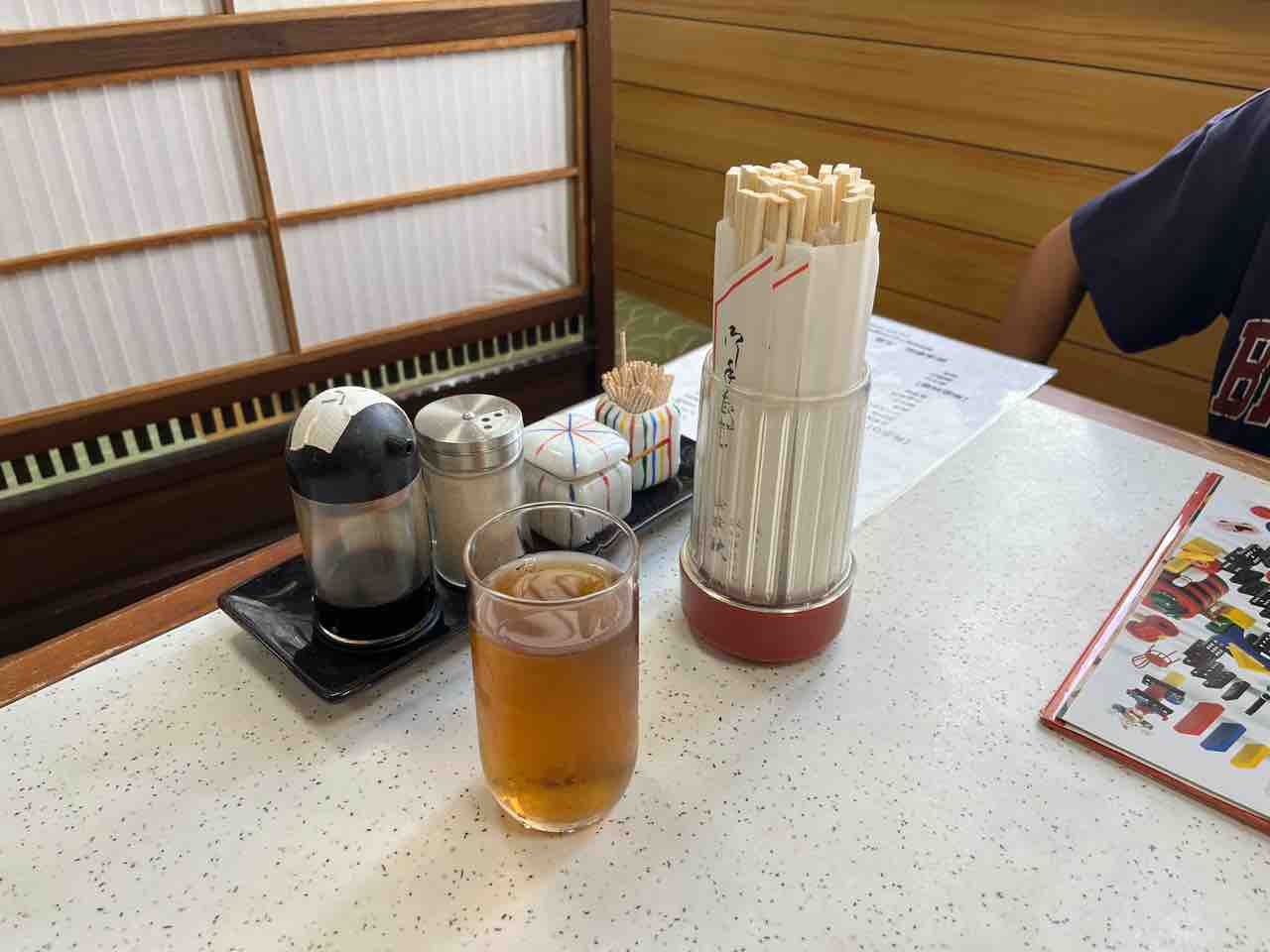 座敷を陣取ると麦茶が配膳されます。