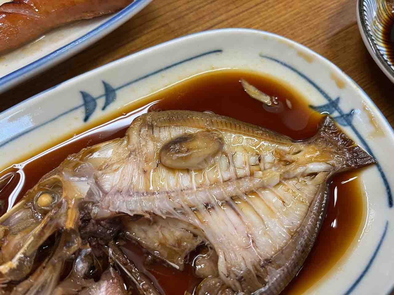子供に頬肉やヒレ肉を与え、お父さんは身を一口放り込み、熱燗で濯ぐ。