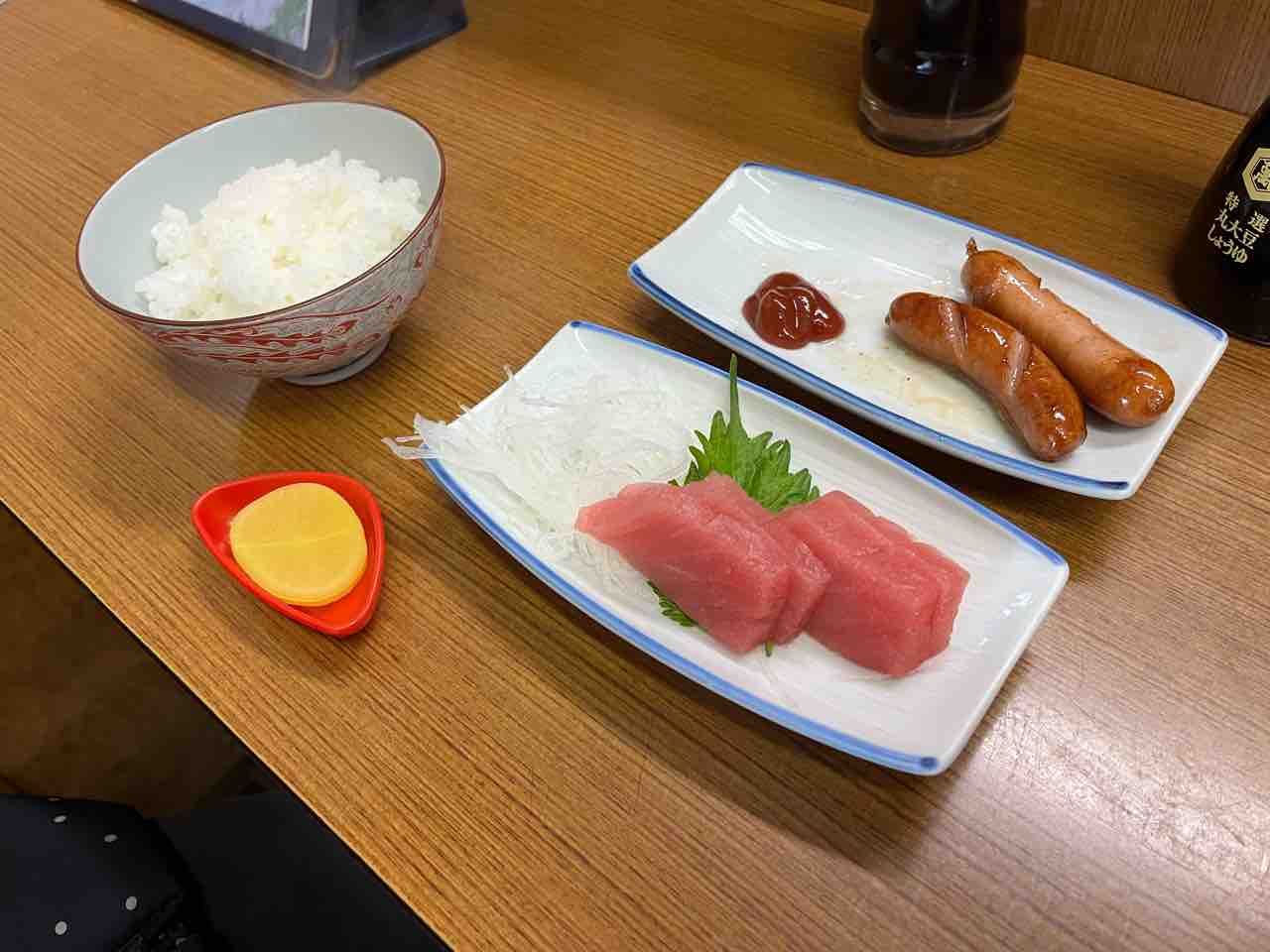 座れば出てくる真ん中の”いつもの”!さらにこの日はウインナーをお願いし、ケチャップまで請求するムカつくガキである…。