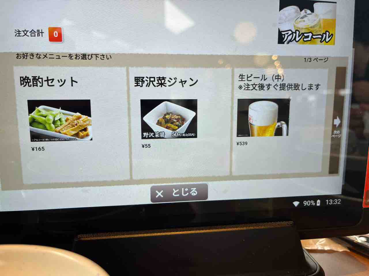 タッチパネルで注文いたします。