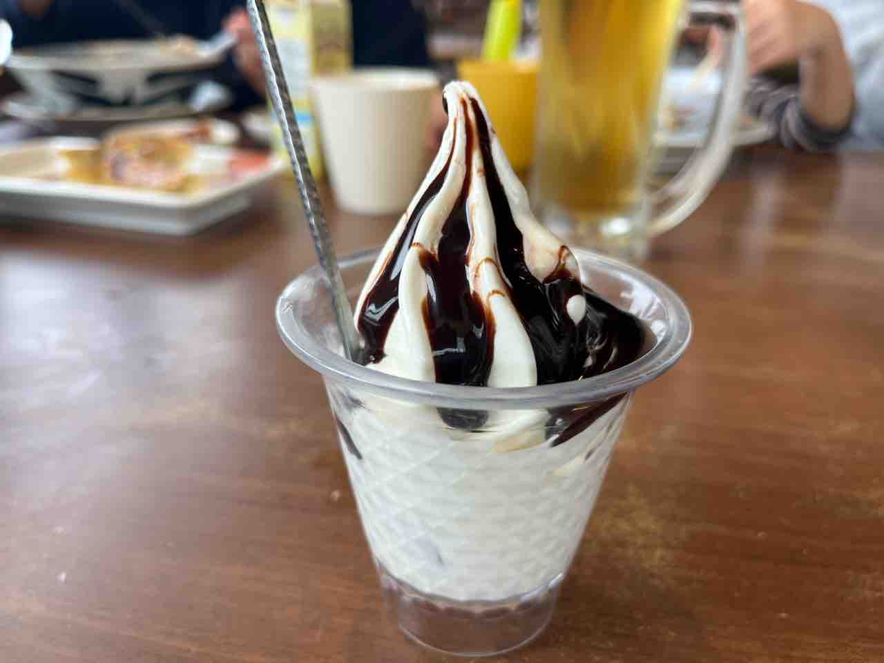 お子様たちのシメはソフトクリーム98円。