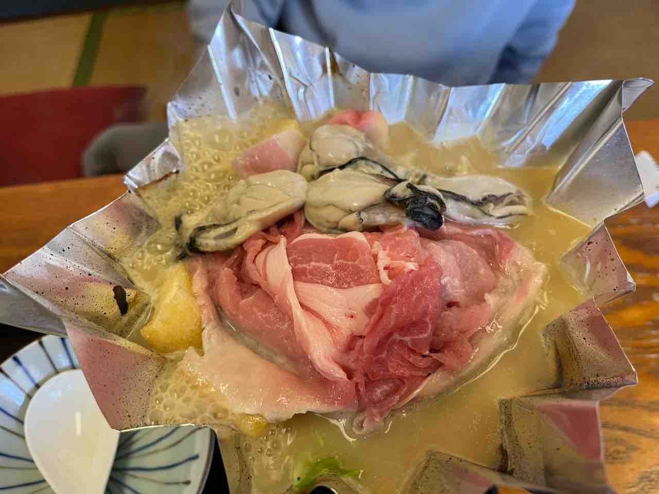 奥様は週替わりメニュー「かきと豚の味噌鍋」