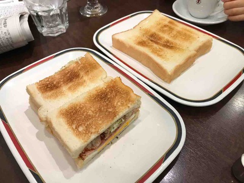 市場でトースト (岡田バージョン)、アイスミルクコーヒー@愛養(築地場内市場、東京都中央区築地)