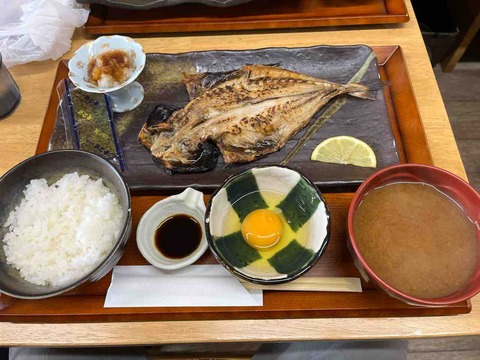 市場で焼魚2種盛定食、朝定食@焼魚専門太市食堂(大名古屋食品卸センター、愛知県熱田区日比野)